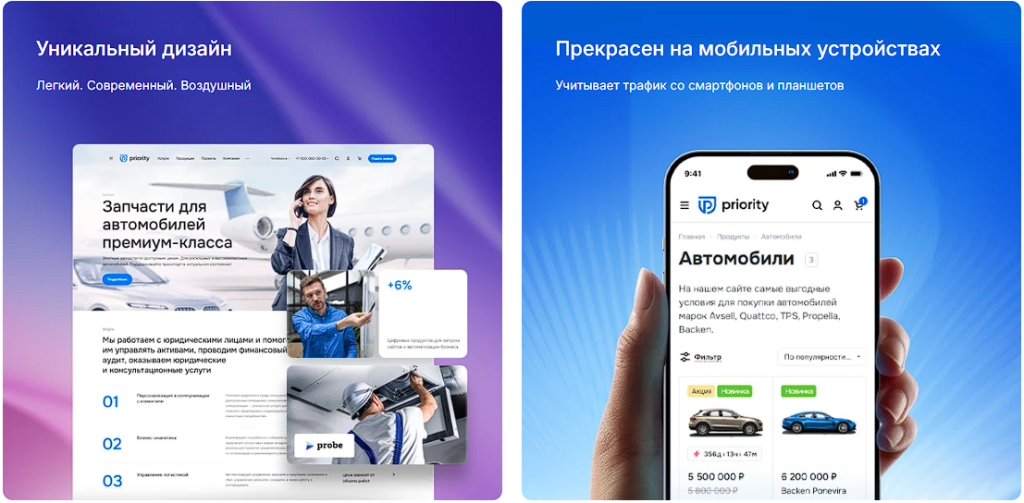 Дизайн Аспро: Приорити 2.0 вовлекает во взаимодействие. Стиль — лаконичный и выверенный до пикселя, а основное внимание уделено вашему контенту.
