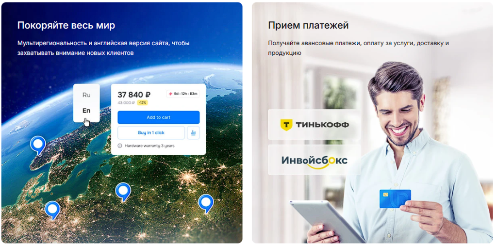 У вас крупная компания, которая охватывает разные города и страны? Аспро: Приорити 2.0 масштабируется вместе с вами. Подключайте мультирегиональность и выходите в новые регионы с минимумом затрат. Настраивайте английскую версию сайта, чтобы покорять новые страны. Выходите на международный уровень и расширяйте бизнес!