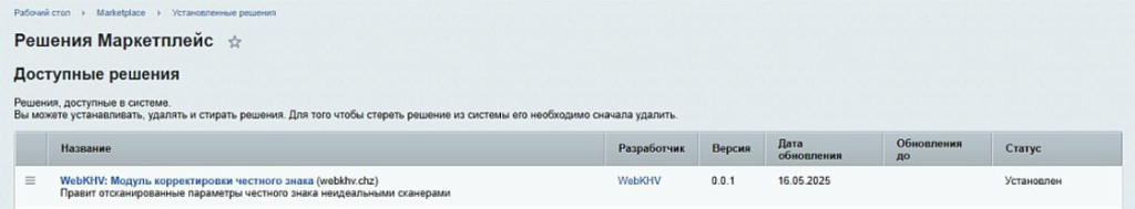 - В разделе "Маркетплейс – Установка решений" найдите модуль.