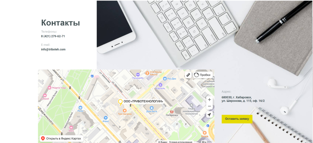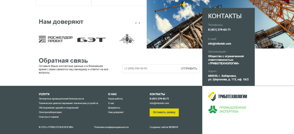 Корпоративный сайт для компании "ТРИБОТЕХНОЛОГИИ"