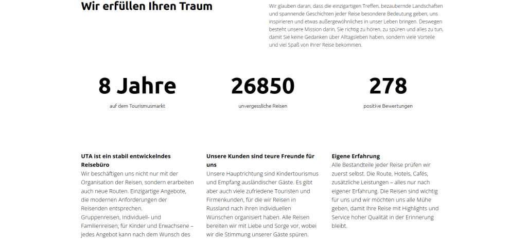 Мультиязычный сайт туристической компании "UTA"