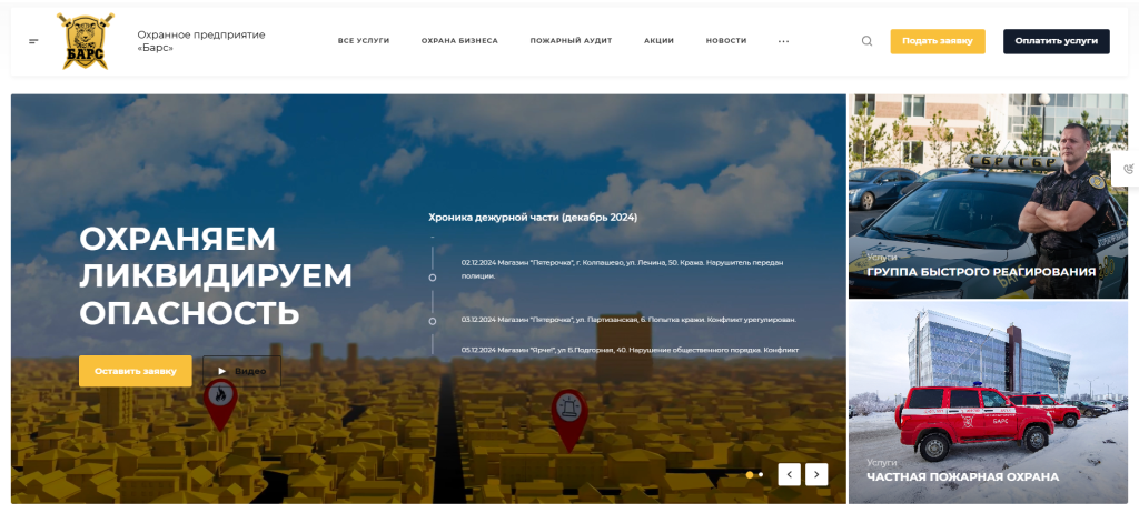 Для охранной компании разработан современный и функциональный веб-сайт, использующий шаблон АСПРО Корпоративный сайт 3.0.