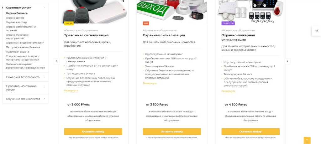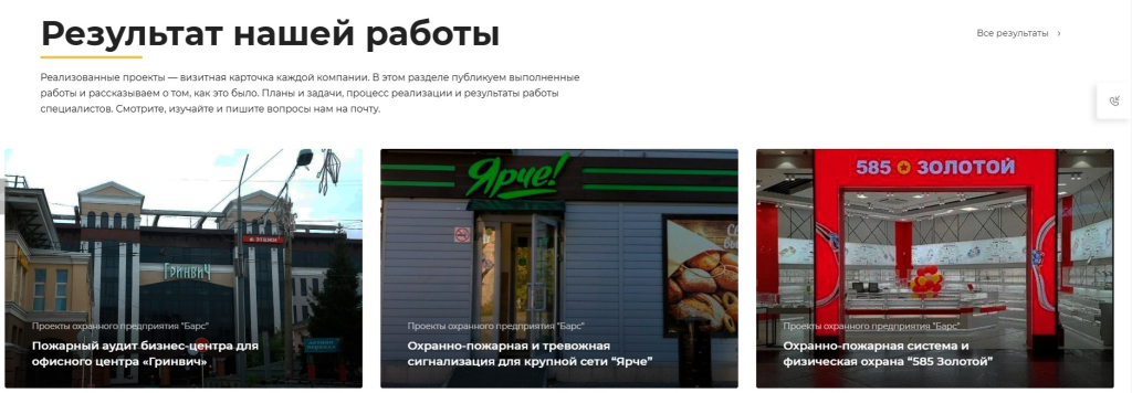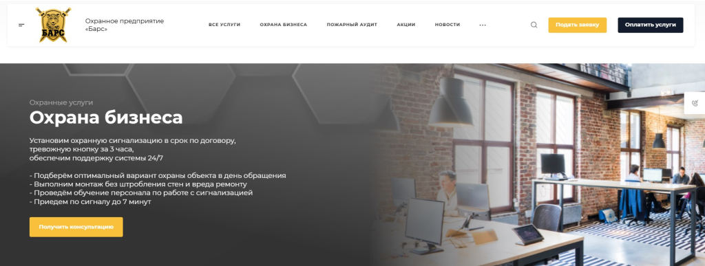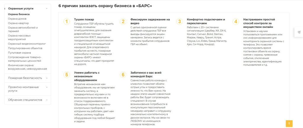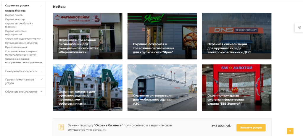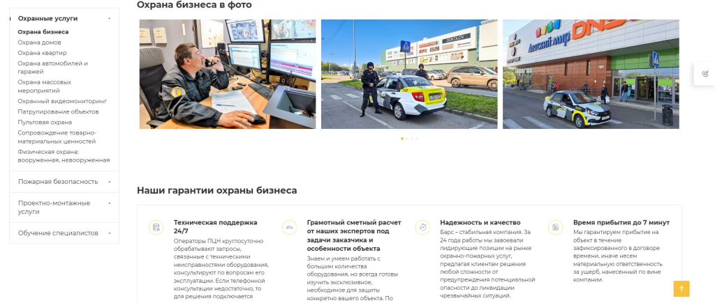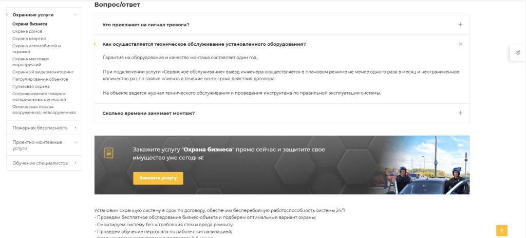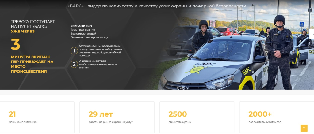 Для охранной компании разработан современный и функциональный веб-сайт, использующий шаблон АСПРО Корпоративный сайт 3.0.