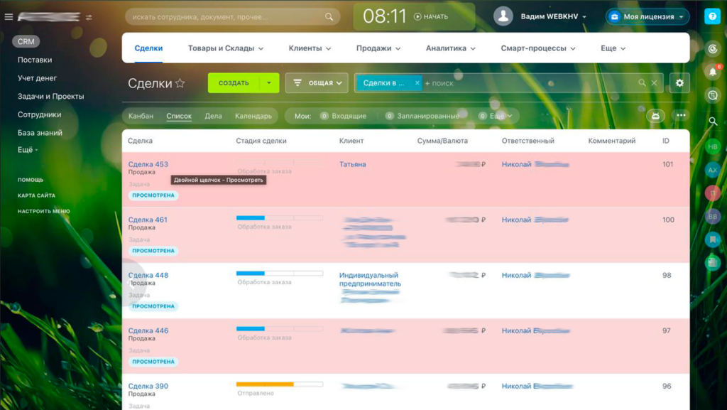 - проверяется наличие клиента в базе контактов — если контакт есть, он привязывается к сделке, если нет — создается автоматически.