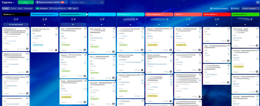 - повышение качества работы менеджеров и прозрачности процессов в воронке продаж.